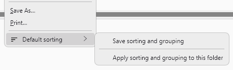 This add-on allows you to save the current sorting and grouping of a folder as the default. The saved sorting and grouping can then be applied to other folders (and subfolders). New folders will automatically have the saved sorting and grouping applied. |